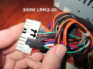 - For the power source, I used an old PC power supply. Here’s a pic showing which wires I had to twist to get the supply working: